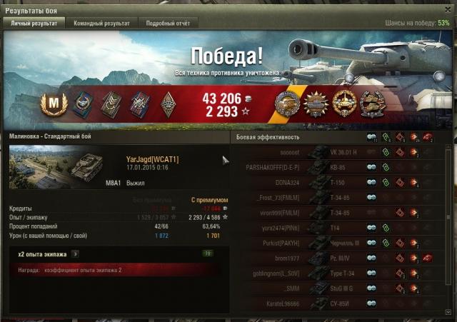 Любимая "малышка-гаечка" подарила первого Фадина! http://wotreplays.ru/site/4452380#malinovka-yarjagd-m8a1