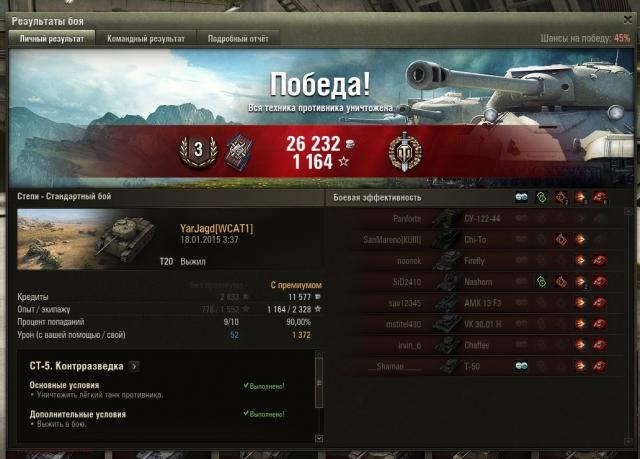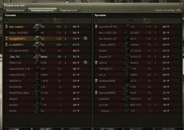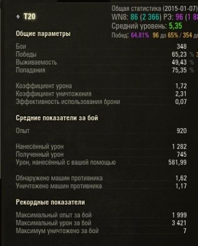 Американский средний танк Т20 Тема на ОФ, где всё про него рассказано http://forum.worldoftanks.ru/index.php?/topic/945349-т20/#topmost Мой красавчик Подсмотрел его у Данилы/Peace_Bro (огромное ему спасибо!!!! ) , когда катали во взводе. Попробовал - понравилось! А после нерфа Хэлки, Т20 стал, для меня, одним из самых любимых и фановых танчиков. Используемая тактика - очень похожа на Хэлку. Бывает, ругают за это... Но цифры говорят о том, что чаще всего, всё делается правильно. Не идеальный, конечно, но хороший и показательный бой на Малиновке. Немного посветил, проверил маскировку, выжил под бомбёжкой, промахивался по целому танку и попадал в пиксель... Ну, а когда пришло время, проехался по карте и добрал фрагов для воина. http://wotreplays.ru/site/4408291?secret=ac9fab797b85b46923c12beb51de34cc Совет тем, кто разочарован в новой Хэлке - попробуйте Т20, должно понравиться. Знаю, Т20 в клане есть, знаю даже одного , как минимум, такого же любителя... Так что, можно пообсуждать и похвастаться...