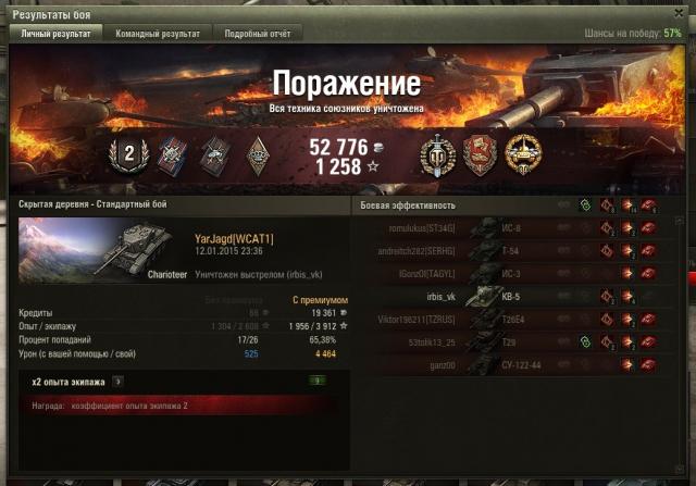 В конце просадил ПП с 56-57% до 54%, зато немного вырос средний урон. У экипажа не прокачал даже 1 перк (сам виноват - не перевел экипаж на ускоренное обучение, просто забыл) Решил дальше на ней катать, пойду до 8 лвл. Сравнивал Чари с Ягой2, чем то они похожи. У меня вопрос: если я возьму Чари, не получится так что это будет вторая яга2 с башней? Или всё таки это разные машины? Серёг, ну совершенно не похожи, как день и ночь Чари, это своего рода Хэл, только на 8. Естественно, играть сложнее, обзор у всех есть, незаметным быть сложнее. А светиться очень нежелательно, броньки то нет. Но есть скорость и есть пушка, с которой никто не страшен . Яга2 то-же хороша, но сравнивать их, как то не получается даже, яга совсем другая по игре.