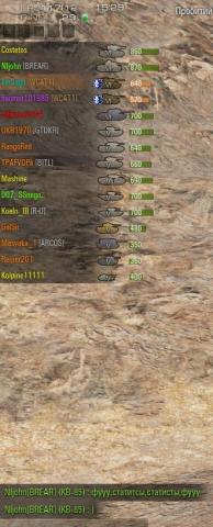 Тройной взвод на Т20. Очень удачно(без поражений), весело и позитивно покатали... Раш по Сталинграду (Виталя/Бумер представляет как это весело )... Руинберг... Да много было хороших боёв за этот вечер. Этот не очень интересный, без эпиков, просто вытянули взводом тяжёлый бой. И процентов на победу было не много, и вражины наседали. Главное, удалось сохранить жизни до конца боя, а там уж, зарешали. Ключевой момент, считаю, это когда Рома остановил прорыв к железке, ещё и выжить умудрился. А иначе бы зажали с двух сторон и было бы уже не отбиться. За воина спасибо! http://wotreplays.ru/site/4459748?secret=ac9fab797b85b46923c12beb51de34cc А действительно "супервкусные" сегодняшние бои на Т20, Роман выложил в Хвостомерке