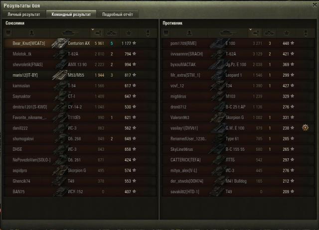 11. Лично мне интересно будет посмотреть на то, как можно набивать столько на чехе, или на джексоне, который ты недавно закончил. Однако, в твоих постах только скрины, а на вотреплее март, а потом сразу сентябрь. И то, из свежего (а это 4 реплея) - для меня лично интересных танков нет. Сейчас компа под рукой своего нет, так что мгновенный просмотр я тебе не обещаю, даже если ты этот бой на чехе выложишь Но это не значит, что реплеи не надо выкладывать