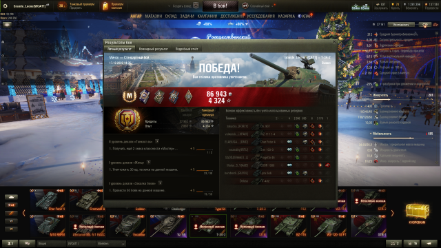 Апну тему. http://tankireplays.lesta.ru/site/14210701#minsk-grande_leone-t-34-2 http://tankireplays.lesta.ru/site/14210685#prohorovka-grande_leone-t-34-2 http://tankireplays.lesta.ru/site/14210638#layv_oks-grande_leone-t-34-2 Претензий к нему ровно две, сравнительно с Т-34-3: 1) Где броня, почему башня от ст-7 (180 мм номинал), а борт корпуса из бронефольги (45 мм)? У 34-3 башня 200 мм, борт 80 мм. 2) Почему меньше альфа, хуже время сведения и конечный разброс, чем у 34-3? Положительные моменты: 1) Удельная мощность больше на 2 лс/т (сравнение с турбинами). И это действительно круто. 2) ДПМ на 150 единиц выше, чем у 34-3. Впечатление такое: танк не выдающийся, но интересный. Броня не очень, но чуть-чуть танкует башней. За счёт динамики поджимать удобно и комфортно. Хотя 34-3 по совокупности характеристик однозначно лучше. Вероятно, задержится у меня в ангаре на какое-то время: за 23 боя получил 63% отметки при 2900 суммарного урона. В теории, это будут простые 3 звезды на стволе. И дело не в циферках (и никогда не в них!) - просто 34-2 начинает мне нравиться.