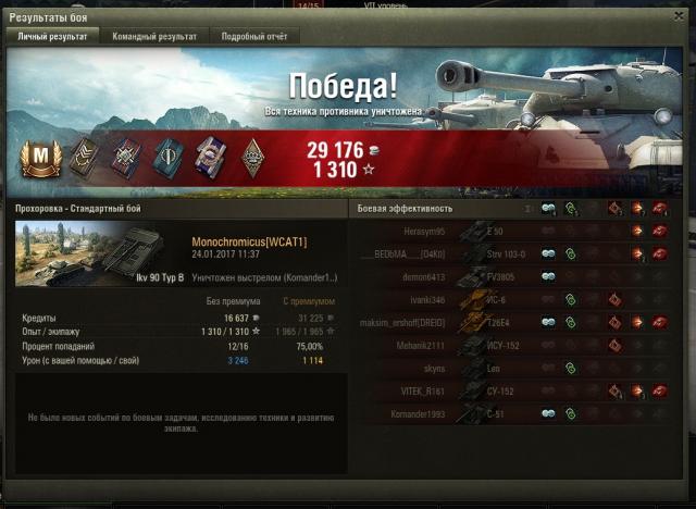 Мастер на 16-м бою. Тупо ассистом и светом. Пепелац мне нравится..и хоть обзор слабоват- но правильно подобранное время кд (разрабы иногда на работу ходят неукуренными) и подвижность-позволяют машинке нормально играть, а не страдать. Не обошлось без очередного придурка, который меня подпирал в кустах..но правильный выстрел (меня засветили)- и удод стал купюроприёмником. http://wotreplays.ru/site/9559832#prohorovka-monochromicus-ikv_90_typ_b