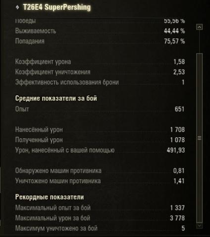 Итак..победила жадность- взял самого дешёвого из прем ст-8 в обмен на Т34. Решающим фактором кроме цены стала ещё и льготность. Танк пришёлся ко двору. Да-слоупок..но 34-ка была не быстрее. Зато кд менее 7 секунд. Нормальная скорость сведения и, о-чудо! хорошая броня. Иногда конечно всякая мелочь странно шьёт в лоб, но вот разобрать третьего деда в клинче, т32, надругаться над еписью, вырвать гланды е-75...этот аппарат однако могёт. Я конечно катаю его в основном на голде, ибо фарм не столь важен, но даже при этом какие-никакие шекели СУП привозит..а в тех боях где играл чисто на бб- 40к чистыми легко. При этом играется куда как веселей и активней, чем на том же 34-м..Правда я обычно с тяжами езжу...и иногда из-за этого огребаю. Пока вижу 1 жирный минус..при заявленной максималке в 40 км/ч, пепелац в среднем ползёт 20-30 километров у час... Экипаж взял сборный..97% первого перка и лишь кэп имеет почти 2. Отчёт за первые 27 боёв. 3 ст стены, 2 ок.