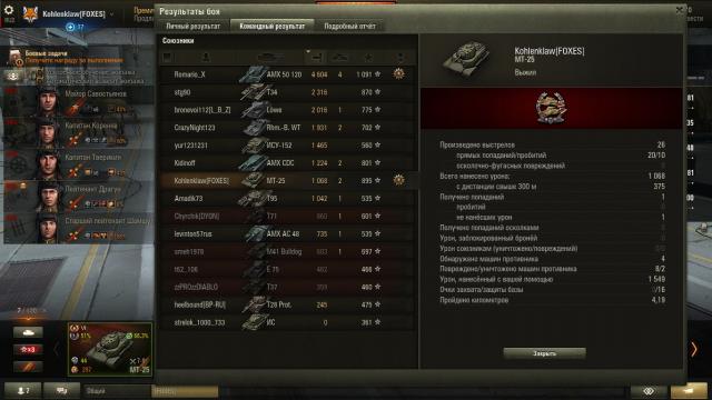 Получил "Мастера" уже на 12 бою, сразу же после того, как поставил топовое орудие (которое топовое же на предыдущей АМХ 105). Бой был просто чудесный: с самого начала дрогнул палец на кнопке мыши и в результате засандалил без сведения прямо по ёлке(пусть и не убил), затем несколько раз подряд проходила альфа, да и точность попаданий неплохая выдалась. В общем, что-то небывалое. Саму арту ещё не понял, пока что похожа на предыдущую, только уровнем выше. Посмотрим. как в топе играться будет.