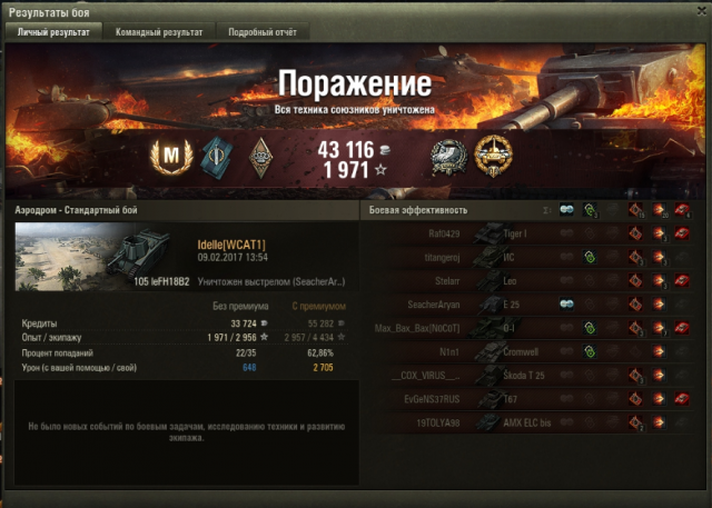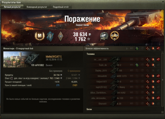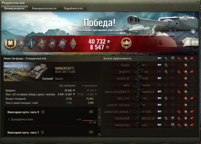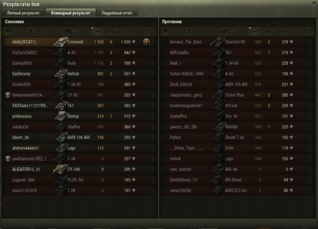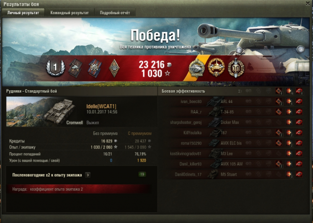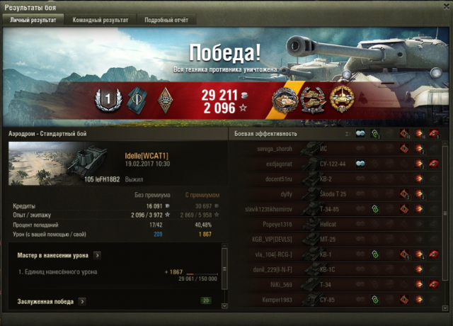 СУ-100 у меня сейчас элитным стал, даже жалко продавать, хотя, я его все равно не буду выкатывать. Учитывая, что экипаж начинал с 75% основной специальности, и несколько раз меня выкидывало из боев, это наверное не самый худший результат: 51 бой до СУ-100М1: Иногда косит безбожно, ну и я люблю блайнды покидать. Думаю, с многоперковым экипажем все красивее, можно было бы вентиль поставить, но, т.к. у меня нет боевого братства, ездила с рогами, досылом и приводами (и то, пока сведешься по засвеченному, его уже разбирают, кидаешь вертухан - или в гуслю (привет, бл-10), или мимо), но несколько раз в пиксель даже вертуханы заходили.