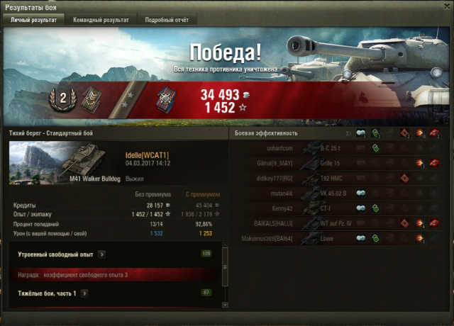 Благодаря акции х2 за победу прошла наконец-то. Под конец прокачки надоел он мне уже. Надеюсь, Юдес того стоит, в предшественниках никакой изюминки. Орудие непонятное, вроде по ттх не косое, но даже при полном сведении бывает летит в край круга, вертуханы не проходят (девочку-наводчицу получила только под конец прокачки, 4к опыта оставалось, может быть с ней веселее было бы). Что мне в нем понравилось: маскировка и увн.
