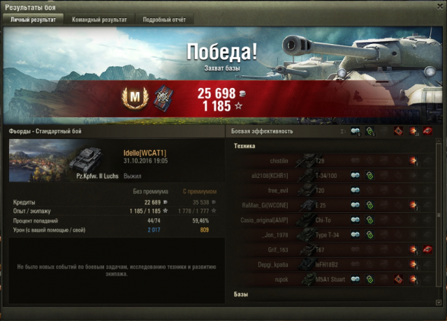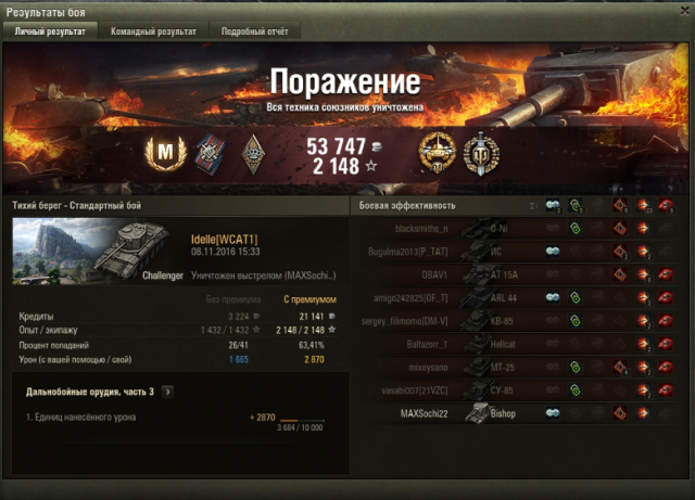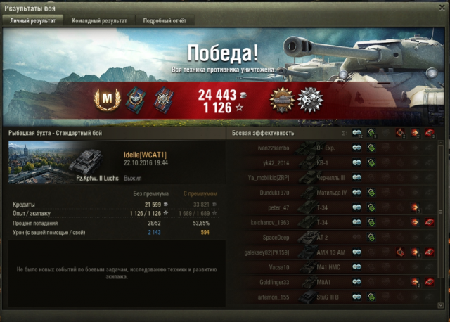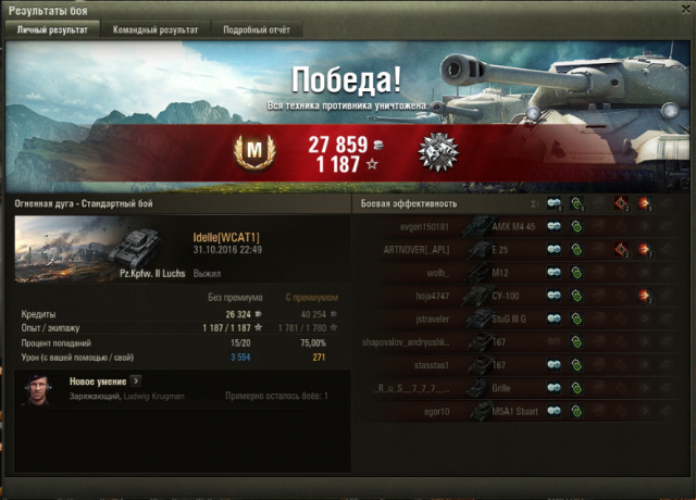 11. Ура, пройдено! Дали две отметки. Несколько обидных проигрышей с Мастером на сегодня. Обидка, рекорд по дамагу на челленджере. В общем, остались я и е25 против диккера. Наша е25 непонятно чем занималась весь бой, у нее 0 урона по итогу, в конце она поехала и сдохла, как написали союзники, занималась скалолазанием, за этим занятием диккер ее и застукал, и отправил в ангар. Я его засветила с горы, получила 1 шот и дала по нему 3 шота, в итоге оба танка шотные остались. Он засел возле базы, оставалась минута, я рискнула и убилась, но хотя бы дали опыт за достойное сопротивление, а так все равно ничья была бы. Если бы ешка дала хоть один шот, то была бы победа. Второй бой, убила арта. Возможно я бы выдержала попадание от бишопа, но в начале боя союзный хелкат сминусовал мне 250 хп, нечаянно, так что ничего тут не поделаешь.
