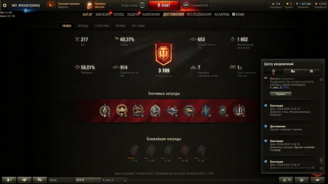 едем дальше KOT_CHEC_TBOu_DOM завершил выступления с личным рекордом. 174 боя, 98 медалей. Да, и после ребаланса играть можно до достижений Макса, мне , конечно, как до неба, но он известный топстатист, я так, по дну клешнями Следующий потенциальный рекордсмен и победитель конкурса имени Катка: KOT_PA3HOCuT_BuPyC
