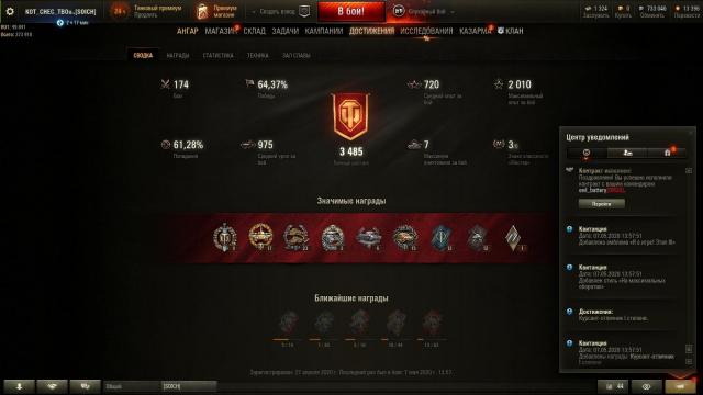 Soich_u3_WCAT произвел фурор на рынке рекрутов , вот , что значит взять правильное имя, не фигню какую-то выпендрежную 164 боя, 101 медаль, мой новый личный рекорд. Красиво закончил, финальный бой на 4 медали Этот парень надолго останется в моей памяти Следующим в бой идет... а хрен его знает, кто идет, дело в том, что ВГ , сдвинув сегодня утром старт рефералки на 4 дня, спутало мне все карты на новый этап стоят четыре рекрута в очереди, но для них еще нет слотов, так что я пока погоняю собственного рекрута под многоговорящим ником KOT_MAPA3MATuK