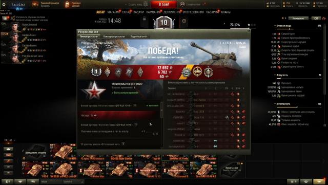 Взял мастера. С настрелом у меня на этой пт беда, но тут все сложилось, главное, вовремя переключать тип снаряда. В конце остался против фулового шпунтика и половинного т28 прото, они засели на холме. Причем заходили в четыре пт против них, и наши слились так быстро, что осознал, что остался один, уже когда стал шотным. Наш тяж ползал где- то на воде и в замесе не участвовал ))Так вот я переключил на фугас против шпунтика, а он- нет ))) Это решило исход боя.