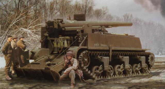 Данная тема будет посвящена американской САУ седьмого уровня - 155mm Gun Motor Carriage М12. - - Историческая справка - - Предложение разработать 155-мм САУ на шасси среднего танка М3 поступило от АТС в июне 1941 г. Разработка самоходного орудия проводилась Рок-Айлендским Арсеналом, инженеры которого решили использовать для этой цели 155-мм орудие образца 1918 г. На вооружение они приняты не были в виду ограниченной возможности ходовой части. Танковое шасси давало больший резерв прочности и имело гораздо лучшую эксплуатационную надежности. Верхняя часть корпуса М3 была срезана, а на освободившемся месте, в кормовой части машины, на тумбовидной установке разместили орудие. Угол горизонтальной наводки составлял всего 14 град., вертикальной – от +30 до -5. Бронезащитой орудие и экипаж не оснащались, небольшим щитом был прикрыт только прицел. Первый прототип под обозначением М6 был представлен для испытаний в феврале 1942 г. САУ перевезли на полигон в Абердине и в течении нескольких недель проводили ходовые тесты и испытания орудия. Несмотря на положительные результаты армейское командование отказалось принимать САУ на вооружение, сославшись на то, что ей не найдется должного применения. С большим трудом АТС удалось убедить сухопутные войска в неправильности их решения и в марте добилась соглашения на выпуск 50 машин. Затем заказ на САУ, переименованной в М12, довели до 100 и к марту 1943 г. силами фирмы Pressed Steel Car Company выпустили все заказанные единицы. Около полугода САУ использовались только для обучения, но в декабре 1943 г. был получен приказ подготовить 74 М12 для отправки в Европу. Работа по доводке САУ была поручена фирме Baldwin Locomotive Works, которая сдала все машины к маю 1944 г. 155 mm Gun M1A1, устанавливающаяся на М12. - - Боевое применение - - Боевое применение М12 началось в июне 1944 г. во Франции. Особую популярность М12 приобрели при штурме линии Зигфрида, когда они прямой наводкой разрушали долговременные огневые точки немцев, и во время штурма г. Кёльн. - - Модификации - - На базе М12 выпускался транспортер М30, который перевозил боеприпасы, батарейное имущество и орудийный расчет. Как правило один транспортер поставлялся на одну САУ. Справа - транспортер М30, слева - САУ М12. Архивное фото М12. - - Игровые ТТХ - - Сток / Топ 400 Прочность (HP.) 22,5 / 28,95 Предельная масса танка (т.) 21,08 / 25,4 Масса танка (т.) 400 / 440 Мощность (л.с.) 39 Максимальная скорость (км/ч.) 17 / 20 Скорость поворота (град./с.) 51/16/19 Бронирование корпуса (мм.) 20 Боекомплект (шт.) 713-1188 / 938-1563 Урон базовым снарядом (HP.) 64-106 / 66-110 Бронепробиваемость базовым снарядом (мм.) 3,16 / 2,47 Скорострельность (выстр./мин.) 7,4 / 5,7 Время прицеливания (с) 390 Обзор (м.) 325 / 750 Дальность связи (м.) 1 400 000 Цена в магазине Итоги. Плюсы: + Быстрая перезарядка. + Быстрое сведение. + Хорошая точность. Минусы — Плохая динамика; — Ужасная поворотливость; — Большая длина. Полезно посмотреть: 1) http://wotreplays.ru/site/5404988#erlenberg-nfomaeu-m12 2) http://wotreplays.ru/site/5383285#pereval-madzhai-m12 3) http://wotreplays.ru/site/5269277#kareliya-tankograd74chel-m12 Внешний вид М12 в ангаре.