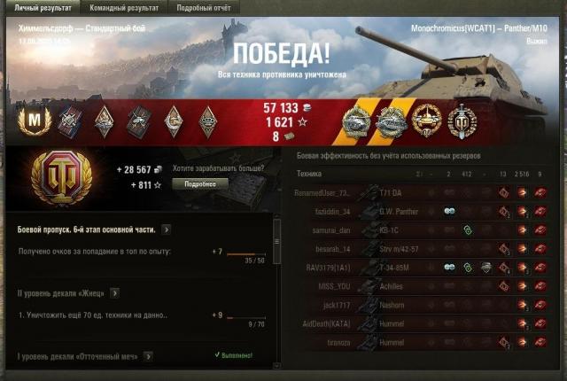 Imperium81 Опубликовано 5 мая, 2020 Жалоба Опубликовано 5 мая, 2020 Затащил катку, Мастер на 1454 чистого опыта. Думал все, капец, но нет!) За такой ювелирный выстрел снявший вражеского тяжа с захвата нашей базы, всему экипажу проставлюсь колой (крепче они не употребляют)) Если бы не тот шикарный выстрел, вряд ли вышел бы победителем в этом бою. Команда одобрительно ахнула http://wotreplays.ru/site/12907764#rudniki-imperium81-t95 Monochromicus, ru_nn, yurach и 7 других 1 1 8