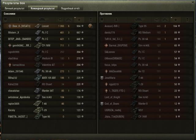 Chronos1 Опубликовано 20 февраля, 2016 Жалоба Опубликовано 20 февраля, 2016 (изменено) БК маловат, это точно. Как-то раз брал базу, стоя рядом с вражеским афком, а второй враг - бот, бродил рядом. Было у меня в том бою уже 10 фрагов, рекорд по аккаунту - 11, но хп таранить не было, и ноль патронов... Вот и сейчас тоже, пришлось брать базу. Весёлый бой с какими-то сонными раками. Скрытый текст Скрытый текст Скрытый текст Скрытый текст Экипаж на лакостике - бывший с Т71, а сейчас - с Т37. Они всегда подкачивались на М22, и когда ещё были на М5 Стюарте, и на Т21, и ещё часть этих ЛТшных бойцов ездит на Т1Е5, так что это - мои лучшие ребята. Это я к вопросу, есть ли для меня какая-то нужная альтернатива прем-ЛТ-3 Лакостику. Изменено 20 февраля, 2016 пользователем Chronos1 Sevaev, Yawa_Artillerist, dgin_dm и 1 другой 4 Цитата